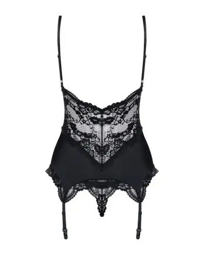 Сатиновый кружевной корсет Obsessive 810-COR-1 babydoll & thong S/M, черный, корсет, танга