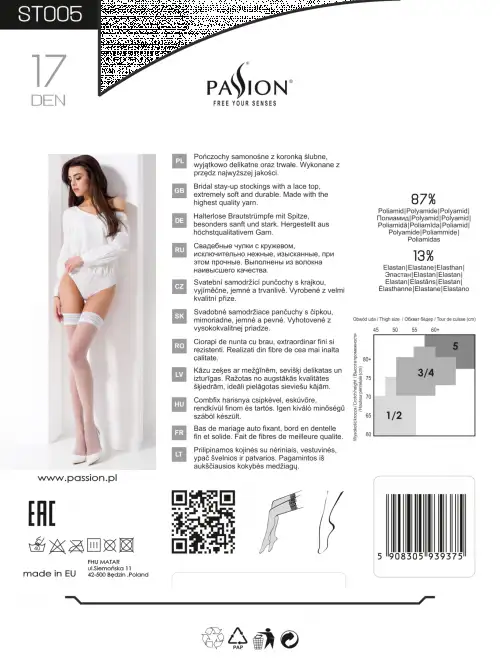 В нашем интернет-магазине мы предлагаем широкий ассортимент секс-игрушек, сексуального белья и аксессуаров, которые помогут сделать день вашей свадьбы еще более особенным. Если вы ищете что-то веселое или романтическое, у нас есть все! Наши свадебные чулки Passion ST005 bianco — лишь один пример того, как мы можем помочь сделать ваш важный день максимально идеальным. Благодаря своему роскошному виду и красивому дизайну эти чулки добавят дополнительный штрих гламура в любой свадебный ансамбль, что делает их идеальным дополнением к гардеробу любой невесты!