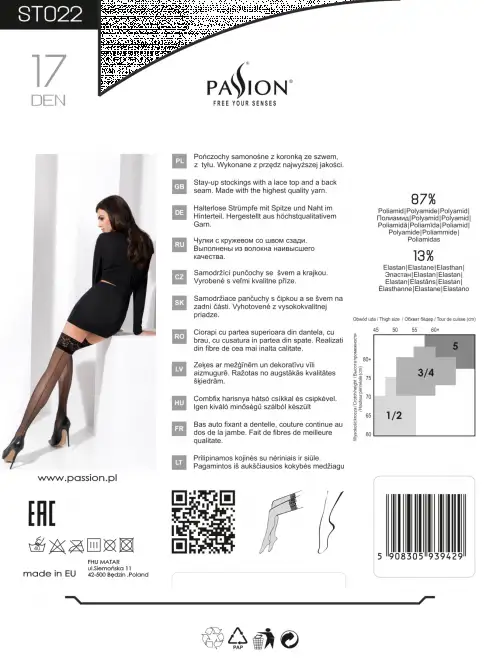 Чулки Passion ST022 nero выпускаются в одном размере, который подходит большинству женщин, поэтому независимо от вашей фигуры или размера эти чулки подойдут идеально! Они также поставляются с удобной сумкой для хранения, поэтому их можно хранить в безопасности, когда они не используются, что делает их идеальными и для путешествий!